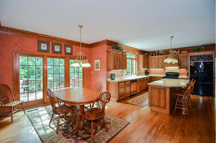 The woodwork in this kitchen is absolutely one of a kind, drawing you in with its detailing and rustic country vibe. You will find that same custom detailing throughout the home — a four-bedroom beauty nestled in Northeast Canton.