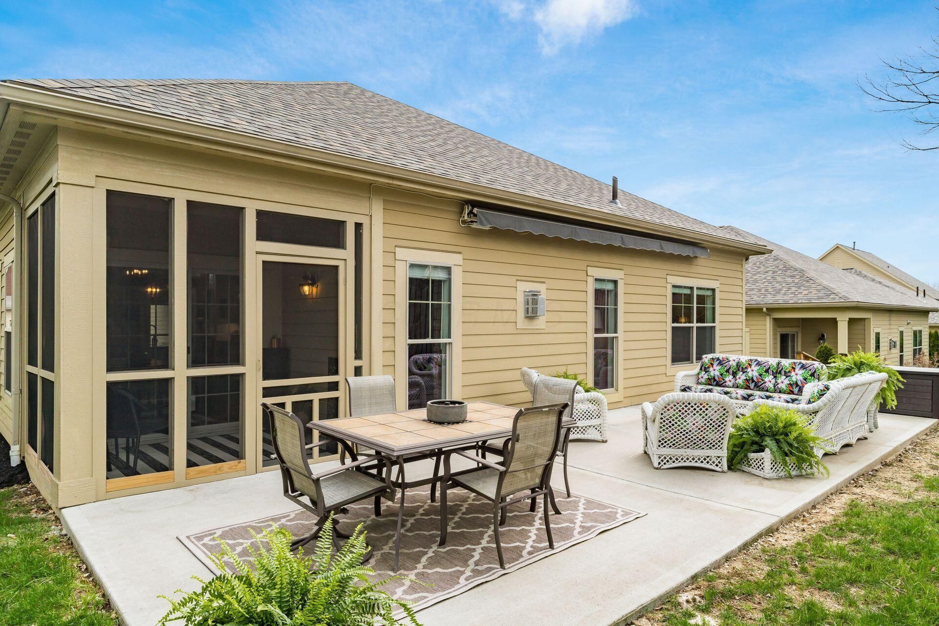 Stunning, Immaculate Freestanding Condo w/ a 3 Car Garage! This is Hard to Find! Enjoy A Carefree Condo Lifestyle & Still Feel Like You're in a Single Family Home! You Will Love the Contemporary Floor Plan & Gorgeous Modern Finishes Throughout. Amazing Island Kitchen w/ Granite Counters, Tile Back Splash, 42'' Cabinets w/ Soft Close Cabinets/Drawers, SS Appliances & Pantry. Wall of Additional Cabinets/Counter Space w/ Prep Sink & Beverage Refrigerator. Gas Log FP w/ Floor to Ceiling Stone & Custom Mantel Highlights the Great Room. Private Primary Bedroom w/ Tray Ceiling. Primary Bath Offers Double Vanity, Quartz Countertop, Beautiful Floor to Ceiling Tiled Walk-in Shower w/ Frameless Door & Bench Seat. Extra Large Walk-in Closet. Spacious Secondary Bedroom & Full Bath. Owner Uses the Front Room as a Home Office - There is a Designated Space for a Closet. Screened Porch Leads to 35' X 12' Patio w/ 19' Electric Awning to Provide Shade on Hot Summer Days. New Roof 2025. Great Location Close to All Amenities!